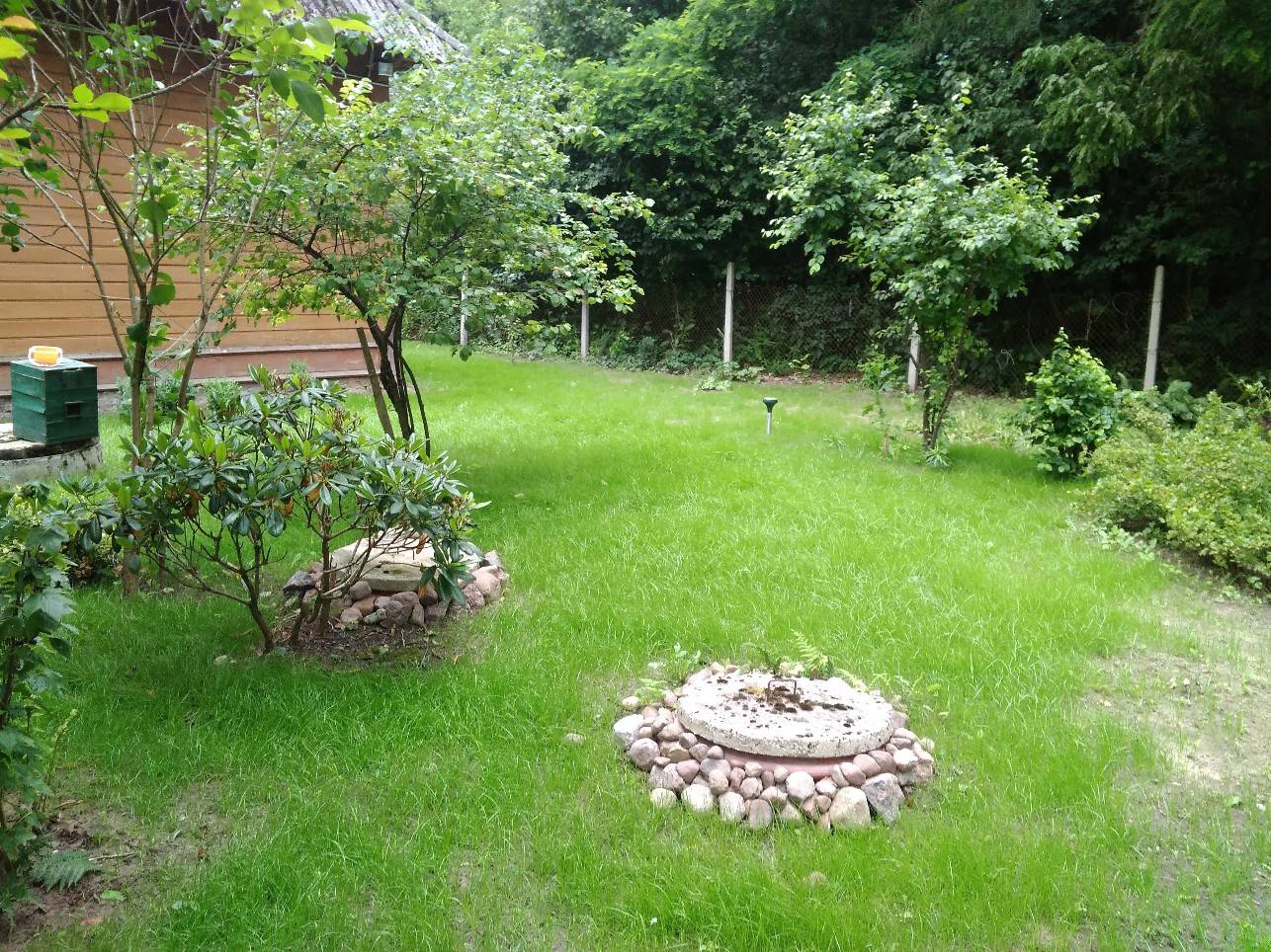 Na posesji znajduje się garaż blaszany oraz solidna szopa , a otaczająca zieleń - sosny, krzewy, brzozy i drzewka owocowe - podkreśla wyjątkowy klimat tego miejsca. To spokojna, cicha okolica, idealna dla osób ceniących sobie prywatność i bliskość natury.
