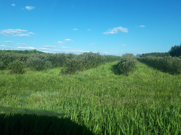 Dojazd drogą asfaltową. Na działce uprawiane są borówki amerykańskie.
