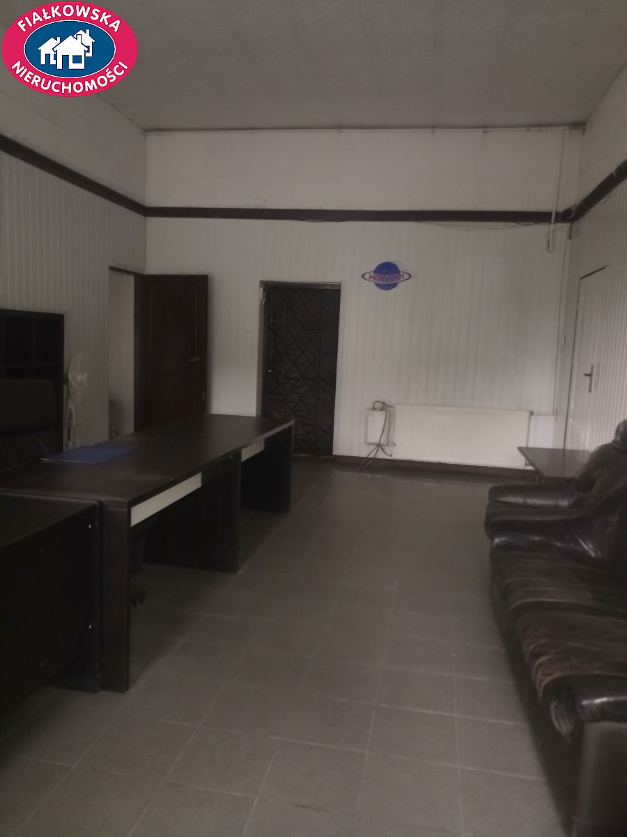 Jeden z lokali ma zamontowane drzwi garażowe- idealnie pod prowadzenie warsztatu samochodowego. Do korzystania także kuchnia oraz 3 łazienki- wspólnie lub do podziału (2 łazienki znajdują się z 2 strony budynku). Woda własna ze studni głębinowej- bez opłat. Szambo własne. Ogrzewanie olejowe, właścicielka może rozważyć montaż zbiornika gazowego. W jednym z lokali znajdują się meble biurowe- mogą zostać lub właścicielka opróżni lokal. Do korzystania podjazd i miejsca parkingowe (500m) wyłożone kostką. Dodatkowo gdyby istniała potrzeba, można rozszerzyć wynajem o teren placu- około 3500 m2 za dodatkową opłatą- np. pod prowadzenie komisu samochodowego. Właścicielka posiada również pod wynajem teren 4500 m2 działki - czysta, niezadrzewiona. Działka z dojazdem drogą gminną- cena wynajmu 2 zł/m2 działki.