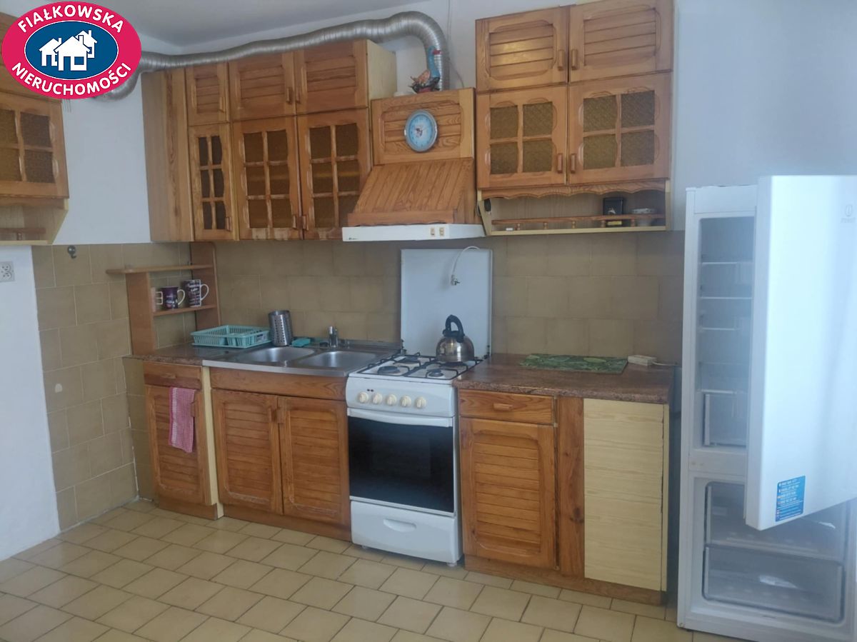- Widna kuchnia o powierzchni 12,10 m², wyłożona terakotą, z funkcjonalnymi szafkami, nową lodówką oraz stołem i krzesłami - opcja przerobienia na sypialnię.