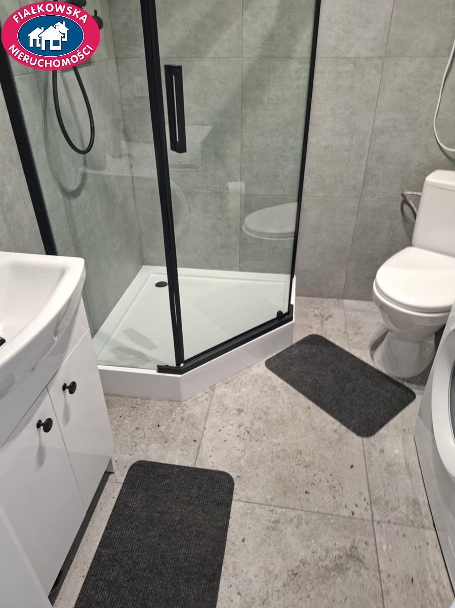 - Łazienka - nowa pralka Electrolux, elegancka szafka z umywalką, lustro, kabina prysznicowa, bojler elektryczny, grzejnik elektryczny oraz niezbędne akcesoria do sprzątania, zapewniające komfort codziennego użytkowania.